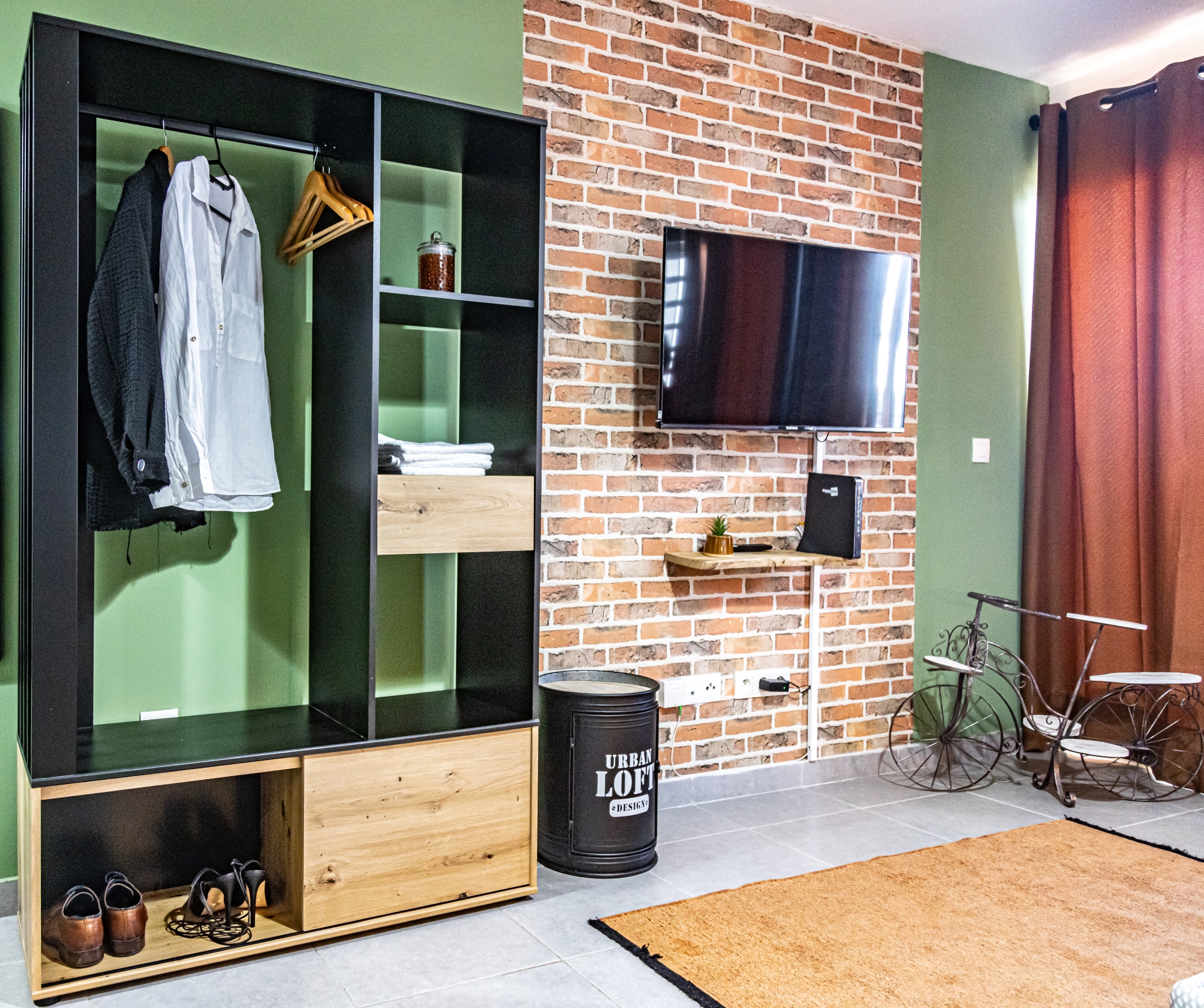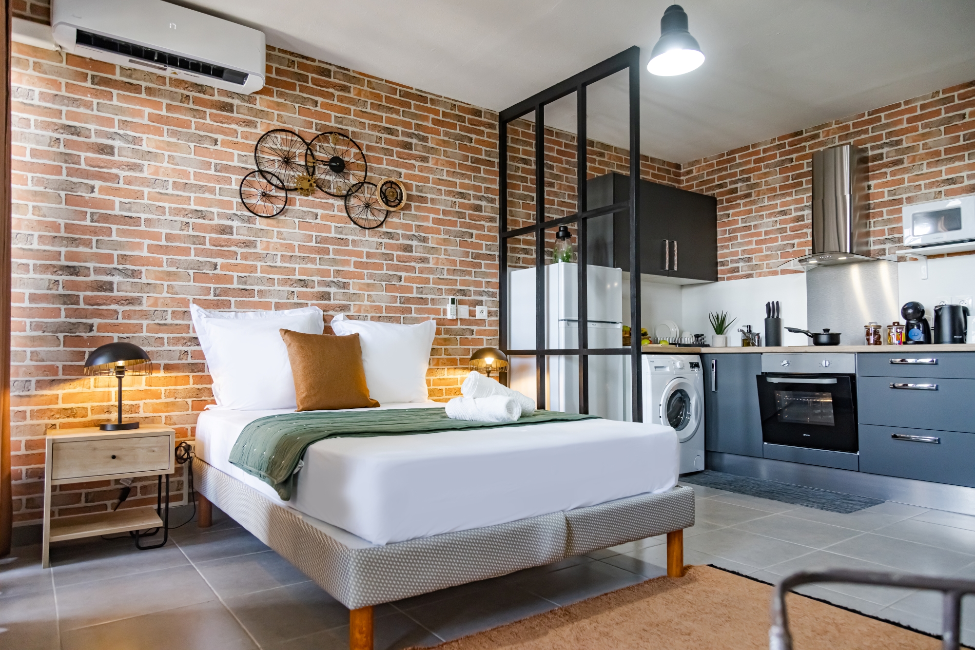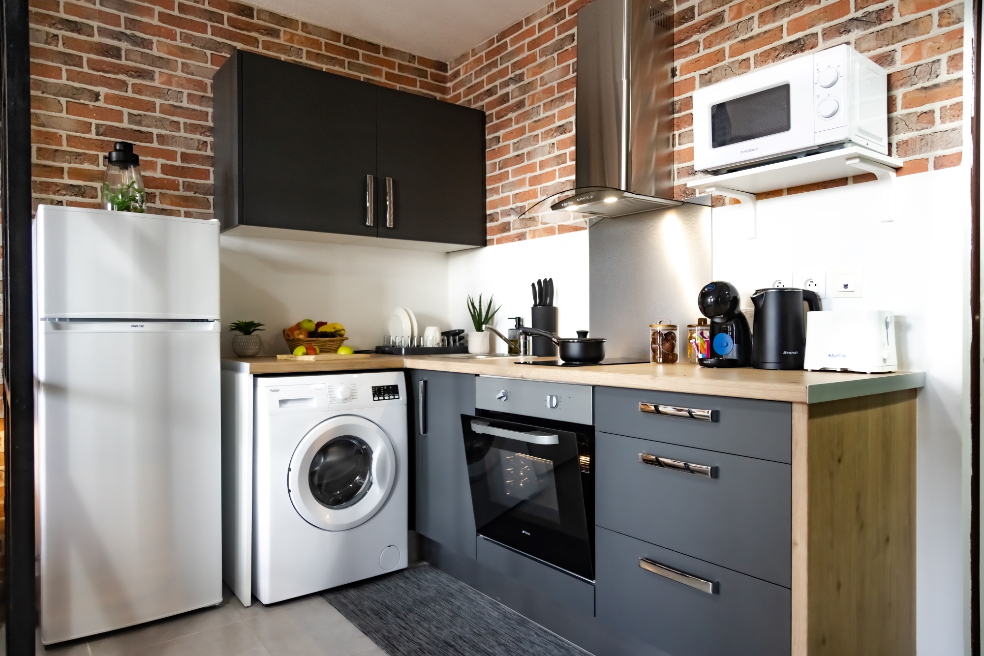 Ce loft industriel, avec sa décoration urbaine, est parfait pour un séjour confortable et stylé. Dès l’entrée, l’ambiance moderne et chaleureuse vous séduira. Le lit double, bien disposé, permet de profiter de la vue sur la cuisine équipée, offrant tout le nécessaire pour cuisiner. La déco allie brique et métal, créant une atmosphère unique, inspirée des lofts new-yorkais.
