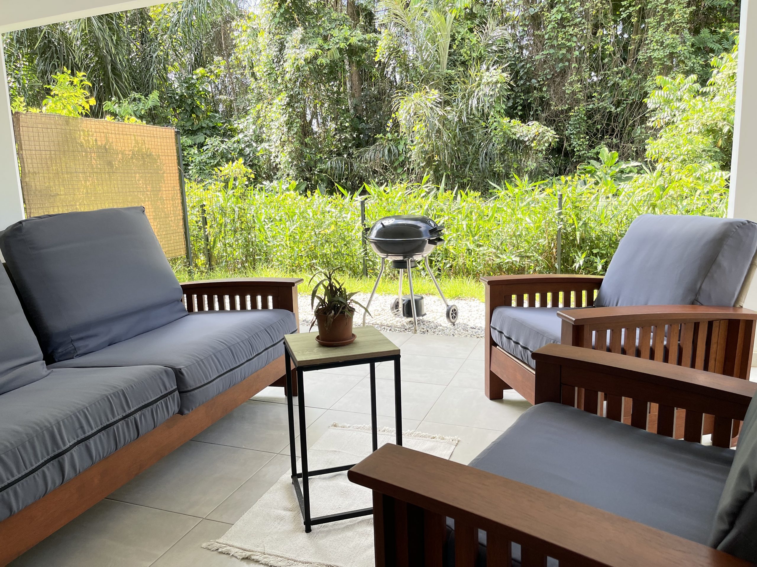 Vous pourrez également profiter d’un magnifique jardin de 80m², idéal pour vous relaxer en plein air, ainsi que d’une terrasse de 12m², parfaite pour profiter du climat tropical.