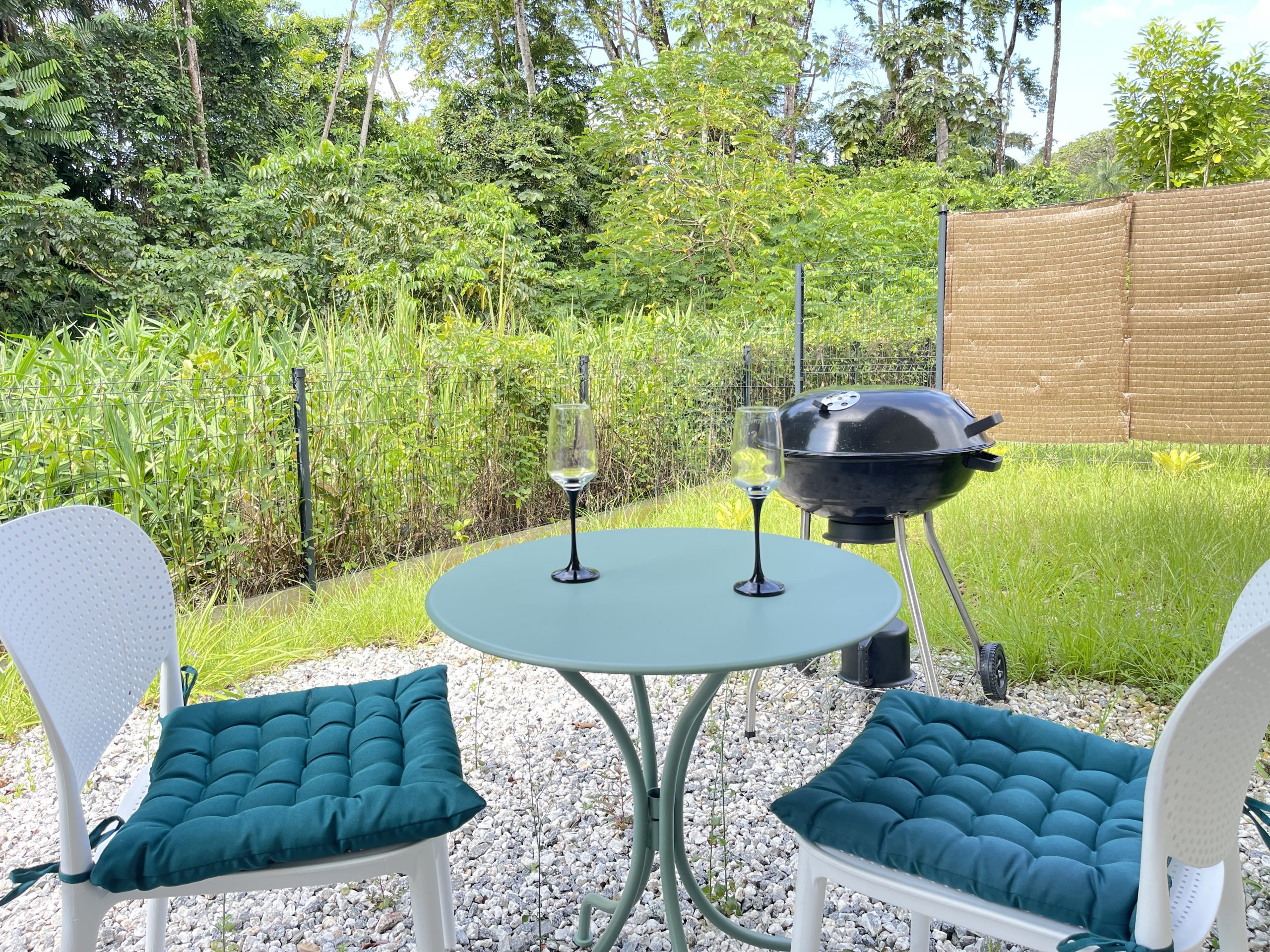 → IMMENSE TERRASSE ET JARDIN PRIVATIF de 80m² avec un bel espace de détente avec un barbecue, ainsi qu’un salon extérieur et une table et deux chaises. Vous avez accès au jardin par la terrasse ou un portillon afin d’éviter un passage dans l’appartement.