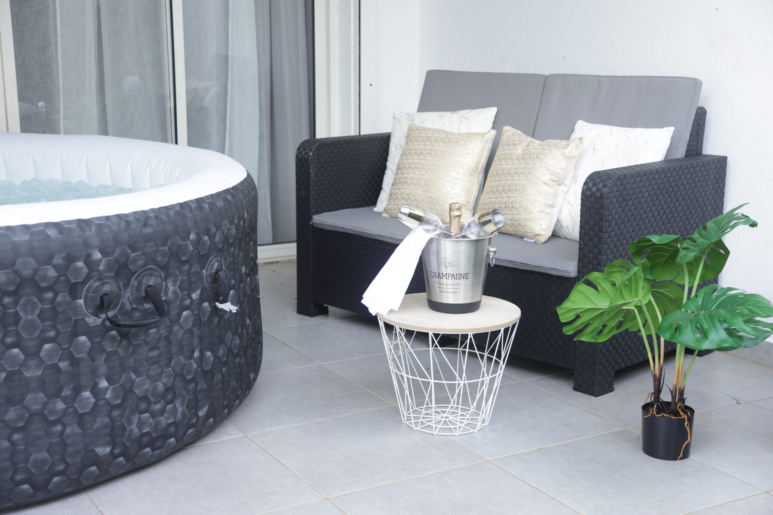 À l’extérieur, profitez d’une terrasse privée avec jacuzzi pour des instants de relaxation exclusifs, ainsi que d’un jardin privatif de 60 m² aménagé avec une pergola, parfait pour des repas en plein air ou des moments de sérénité.